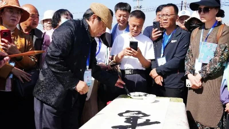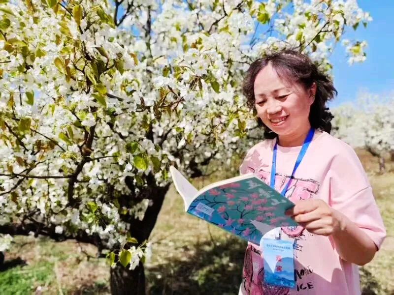 启动仪式结束后,忻州市文联向基层读者赠送《五台山》杂志,广大阅读爱好者共同参与了首场“梨花树下·读诗会”,来自全国各地的诗人、艺术家共写“书”字,将书香与墨香传递到希望的田野上。