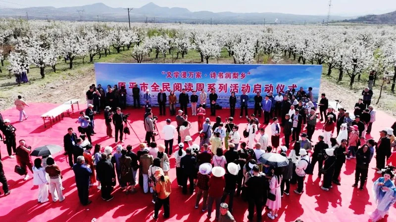 4月18日上午,由中国作家协会社会联络部、山西省作家协会指导,忻州市文联、原平市委宣传部主办,同川镇党委、政府、红门书院承办的“文学浸万家·诗书润梨乡”原平市全民阅读周系列活动启动仪式,在原平市同川镇东闫庄村隆重举行。